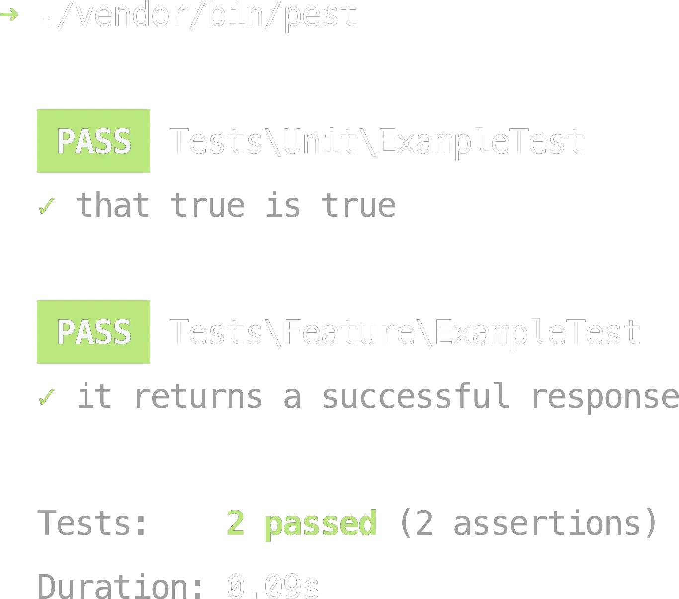 Here is an example of the output displayed when running Pest in a new, fresh project.