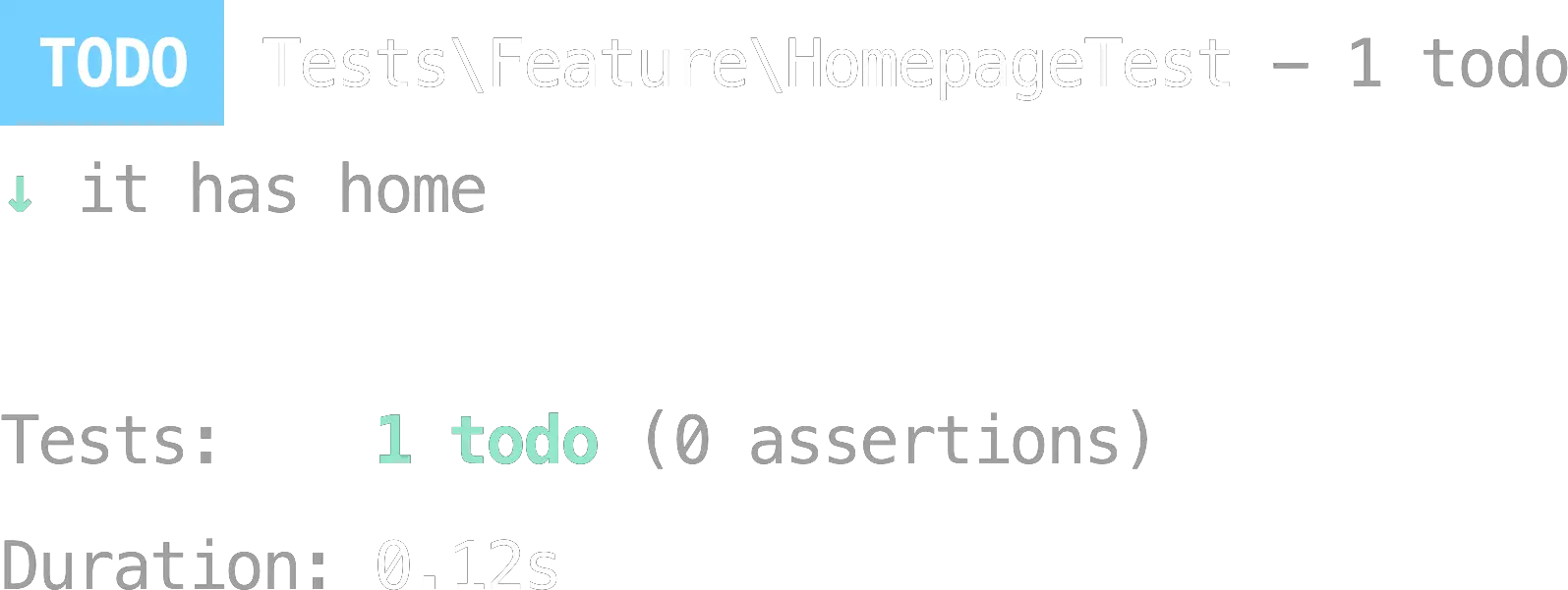 When running your tests, Pest will inform you about any tests that are todos so you don't forget and see them in the test results.